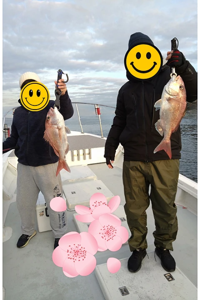 本日は鯛ラバ便(ショート便)で出船しました。 ポイントに着いて速攻でダブルヒットからのスタート! 約30分ぐらいで3名様(全員安打)達成! マダイが待っていたかのようにあたってきました。 その後は落としたらヒットするが約一時間半ぐらい続いて潮が速くなったらあたりも減りポイント移動! その後はあたりはちょくちょくあるものひと流しに1~2匹マダイが釣れてくる様子 時間の10:00まで頑張っていただきました! 短時間でトップ5枚! 暑い中、頑張っていただきお疲れ様でした。