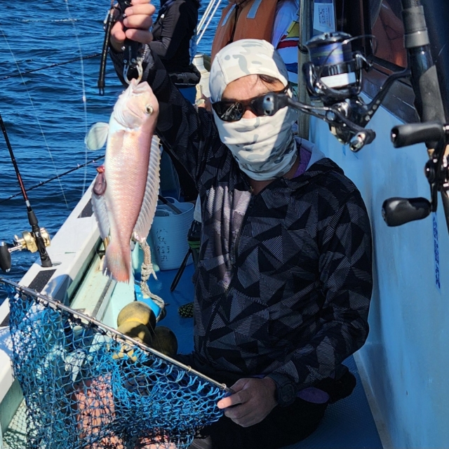 中盤に当たり良く キジハタ、ハナダイ、白アマダイ ホウボウ多数、ソウダガツオ、エソ 色々getできました😊👌 ホウボウトップ8匹🥇 巻き上げ途中バラシ多々ありました💦 暑い中 本日は乗船して頂き ありがとうございました🙇♂️ またのお越しをお待ちしております🙇♂️