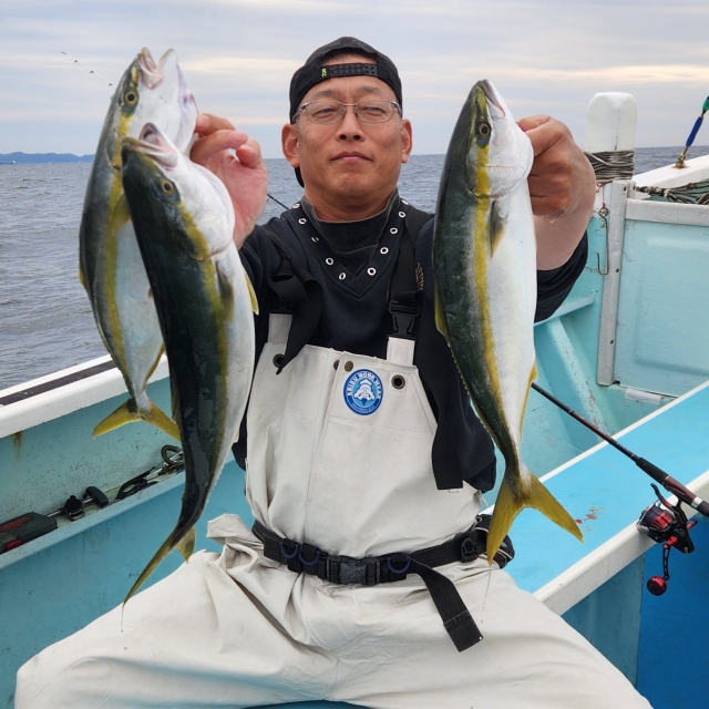 コマセ🎣 ヒラソウダガツオ、イナダget👍✨ ジギング🎣 ショゴ、ホウボウget👍✨ 終了1時間前に強い当たり❗ 3.6kgのカンパチget😆👌 皆さん色々釣れて良かったです😌 海悪い中 本日は乗船して頂き ありがとうございました🙇♂️ またのお越しをお待ちしております🙇♂️