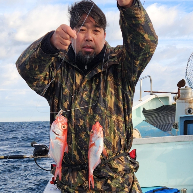 開始から全員クロムツget✨ その内キンメ当たり始めて キンメも全員get✨ クロムツ2点掛け、キンメ2点掛けあり 盛り上がりました😆👌 中盤、反応少なくなり苦戦しましたが 終了1時間前に好反応発見✨ クロムツ何匹か追加でき キンメ3点掛けありました😊 クロムツ・トップ6匹🥇 キンメ・トップ8匹🥇 キンメダイ、メダイ、ユメカサゴ クロムツ、ギンメ、サバ(良型交じり) 色々釣れて 皆さんお土産になりました😊👌 寒い中 本日は乗船して頂き ありがとうございました🙇♂️ またのお越しをお待ちしております🙇♂️