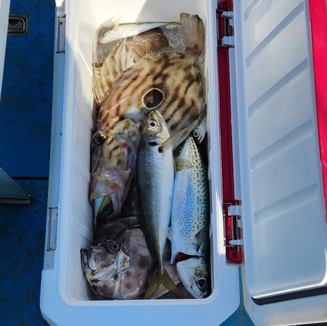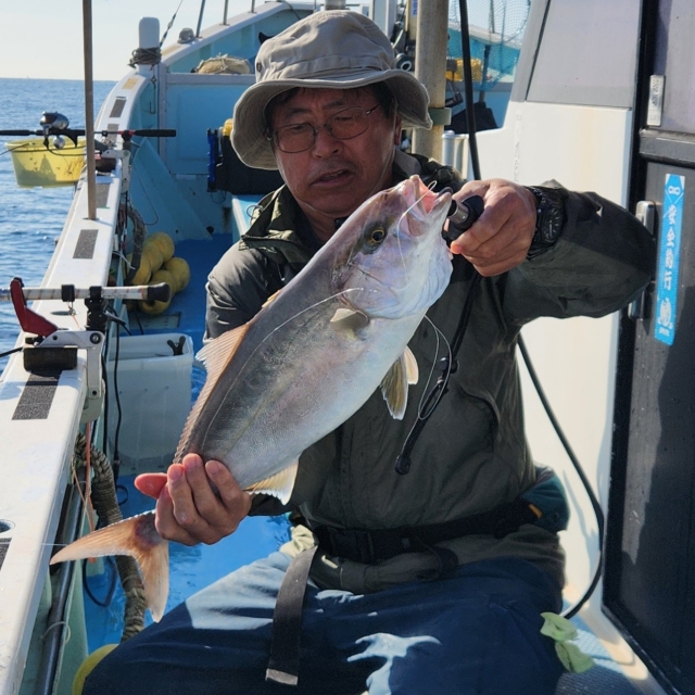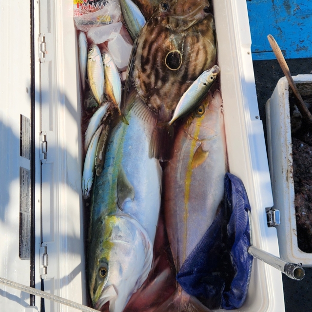 開始から2点掛け、3点掛けで 小アジがポツポツ釣れて 早々エサは確保できました😊👌 泳がせ始めて少ししたら hit❗ワラサget👍✨ その後 カンパチ、マトウダイ追加できました😄 巻き上げ途中バラシ、ハリス切れ アジ食い逃げ何回かありました💦 寒い中 本日は乗船して頂き ありがとうございました🙇♂️ またのお越しをお待ちしております🙇♂️