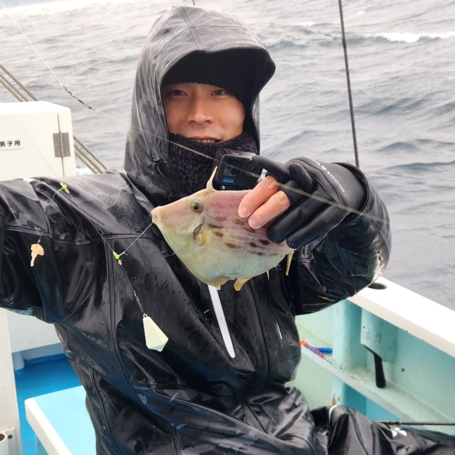 アオリイカ・カワハギ 狙いたい方狙ってもらい (仕立て船なのでご自由に) ドテラ流しで両方get✨できました😊👌 どっちも良型交じり👍✨ 冷たい雨風の中 本日は乗船して頂き ありがとうございました🙇♂️ またのお越しをお待ちしております🙇♂️