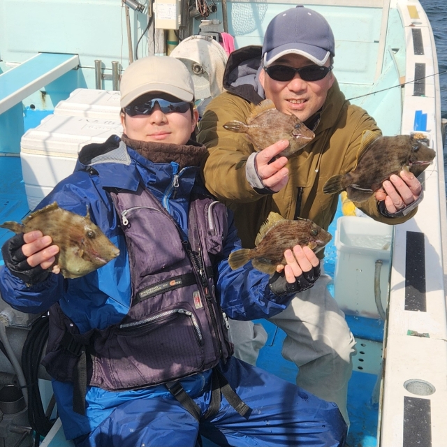 水温低下で濁り潮でしたが 全員カワハギget✨ボウズなし❗ カワハギ釣り初めての方も釣れました😄 良型肝パン交じり😊👌 1~6 トップ6枚🥇 後半、1時間ほどシャクリやっていた方は マルイカgetです👍✨ 風強い中 本日は乗船して頂き ありがとうございました🙇♂️ またのお越しをお待ちしております🙇♂️