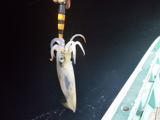 船長イカメタル調査で出船。 アカイカ20杯。 日曜日だと言うのに予約無く、 大きな船で一人で漁場開拓! 明るい内から当り出し、 暗くなり灯りが灯ると魚の当り(汗) サバやカマスがスッテに食らい付く。 合間をぬってアカイカが乗るが、 ポツポツの当りで22時には片ずけ。 予定時間より1時間の早上がり! 今日は大風になって来るので、 半夜便&深夜便は出船しません。 アカイカ丼が楽しみです!