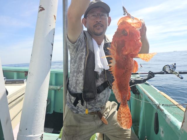 オニカサゴ 20-42cm 10-17匹 チカメキントキ 27-31cm 2匹 アマダイ 30cm 1匹 ウッカリカサゴ 24-34cm 3匹 アヤメカサゴ 15-25cm 7-9匹 鬼カサゴ乗り合い6H便。 3名様のエントリーで出船! 3名様全員がツ抜け出来ました。 1名様は鬼釣りが初めて?かな。 竿頭は、お盆にも乗船の、 伊勢の居酒屋さんの中村様。 智栄丸に通ってる分で 差が出たかなって感じ。 潮の変わり目が沢山あり、 水温もコロコロと変わりました。 水温25.0度~25.7度~24.5度