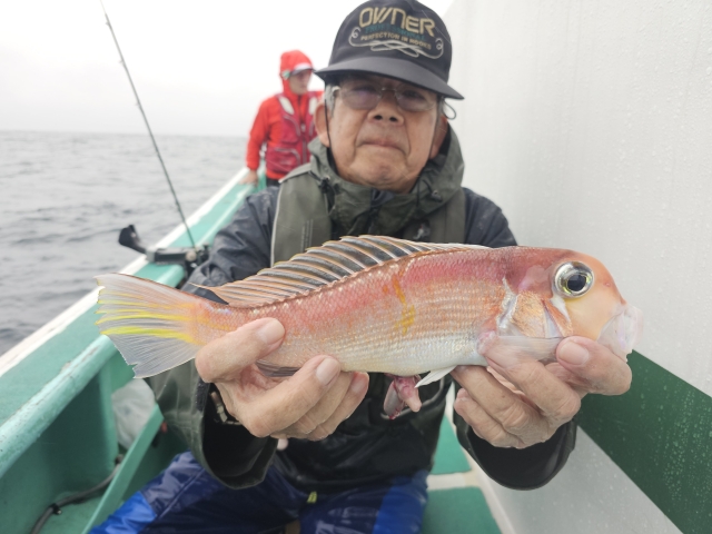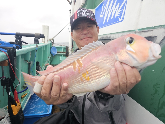 アマダイ 32-43cm 0-5匹 レンコダイ 15-31cm 0-6匹 アヤメカサゴ 17-24cm 1-6匹 アジ 23-23cm 0-2匹 シキシマハナダイ 22-24cm 2匹 ウッカリカサゴ 23-32cm 0-1匹 甘鯛狙いの乗り合いで出船。 6名様のエントリーでした。 甘鯛43cm頭に0~5匹、 船中16匹でした。 詳しく釣果を出すと、 竿頭は5匹で2名様! 3匹、2匹、1匹で、 0の方は船に上げるの失敗で、 甘鯛は海にお帰りになりました(汗) 見えてただけに残念でした。 連子鯛は船中19匹(もっと居たはず)。 後はアジやシキシマハナダイ、 アヤメにウッカリ、鬼(極小)でした。 天候が悪い中、有難う御座いました。 水温25.0度~25.6度