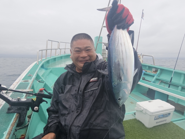 カツオ 1.2-1.3kg 7匹 シーラ 41-53cm 5匹 カツオ狙いで、 オキアミで天秤ふかせ釣り! 何と何と、清水様1名で、 この大きな船を仕立てて頂きました。 潮目のあるポイントでスタート! 漁探には反応が入るが喰わない(汗) 何度か移動もしながら鳥山を探し、 カツオも跳ねるわ大賑わい! 何度か当りもあったが外れる。 そうしてると待望のヒット! 2人共に胸を撫で下ろしました(汗) その後も鳥山を追っ掛け続け、 大木の流れ物では小さいシーラ(笑) 何とか初のカツオ狙いも形になった。 キハダもぴょんぴょん跳ねてましたよ。 水温24.6度