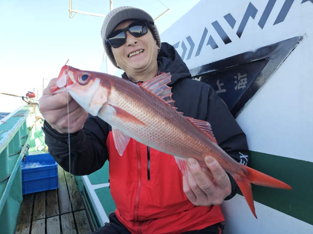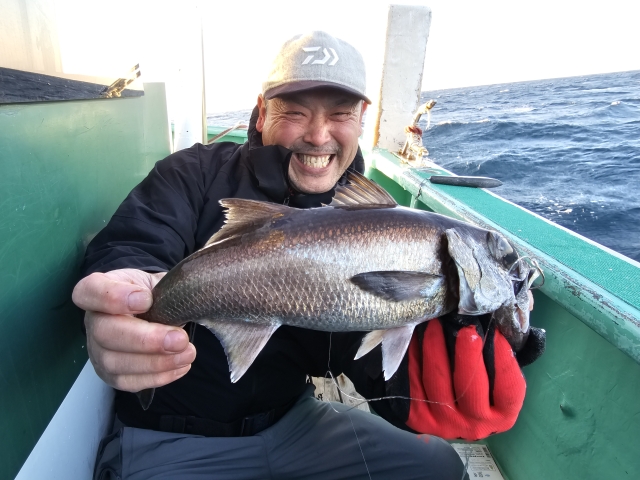 クロムツ 30-35cm 5匹 ハチビキ 41-44cm 3本 ユメカサゴ 21-27cm 14匹 奈良の新井様と柴田様の仕立てで出船。 当初はアコウダイ狙いでしたが、 急遽、クロムツ狙いに変更でした。 底の潮がイマイチのようで、 パッとする釣果ではなかった(汗) 近くでは僚船がタネトンを2本! クロマグロも健在なので、 要注意のトンジギですね(苦笑) 本日はお疲れ様でした。 水温15.8度~16.0度
