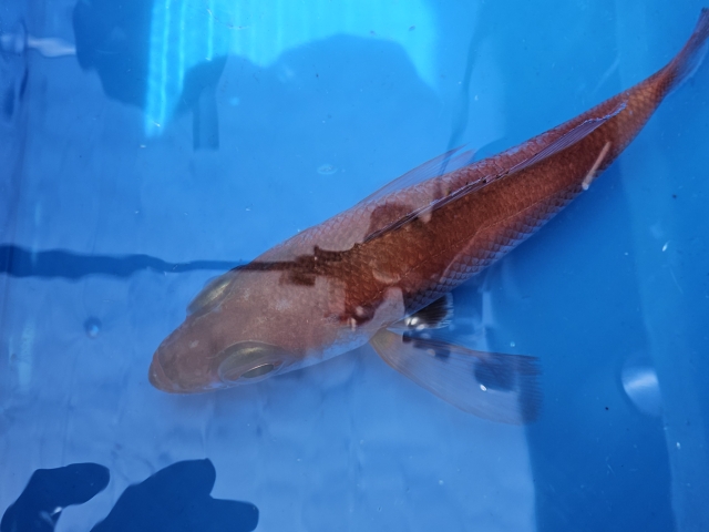 オニカサゴ 25-40cm 1-3匹 アカムツ 33cm 1匹 エビスダイ 25cm 1匹 マハタ 45cm 1匹 アマダイ 32-38cm 2匹 アヤメカサゴ 18-25cm 2-3匹 ウッカリカサゴ 25-33cm 1-1匹 鬼カサゴ乗り合いで出船。 前日に続き、今日も撃沈? 下の潮がダメなんでしょうね。 鬼カサゴ1匹~3匹。 なんですが、凄い魚が釣れた。 十何年振りにアカムツ! 伊勢の居酒屋なかむら様。 アカムツも元気よく泳いでたので、 居酒屋に行けば水槽で見れます。 食べるとなると高額でしょう(笑) 鬼のファーストヒットは10時15分。 次のヒットは11時22分。 そこが時合だったのか4匹(汗) 水温15.8度~16.5度