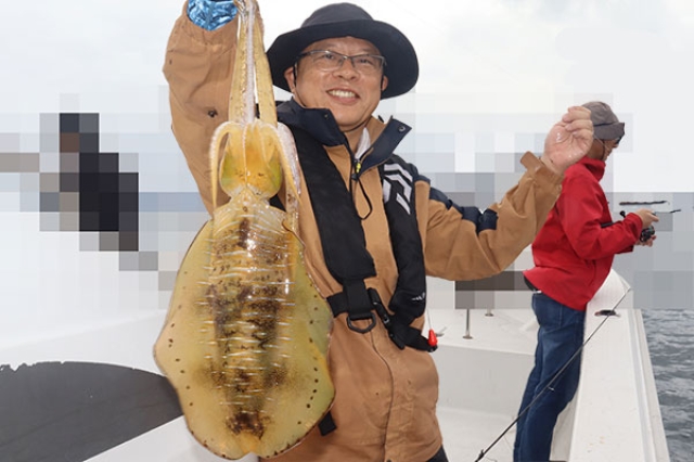 朝は暗いうちからヒット! その後コウイカ地獄にハマり延々とコウイカ・・ その内ようやく連発開始! 本日最大胴長約25cm! 他も20cm超えの良型が連発!! と思ったら船が続々と来て一気にスレました。 その後もあちこちで追加してトップ、アオリだけで8匹。 コウイカも入れると船中40匹超えでした。 募集を「アオリ」から「ティップラン」に替えてて良かった・・(笑) 今日も一日ありがとうございました。