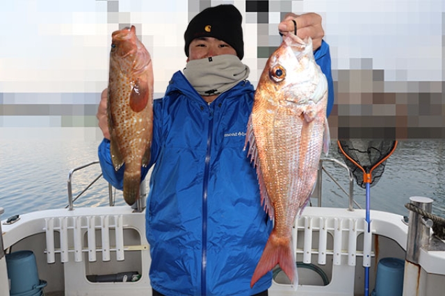 風が強くなる予報なのでいつもと違うポイントへ。 潮が動き始めてすぐに初鯛ラバで一番乗り! アタリが少ないので反応の良いところに行くと連発しましたがすぐに船が増えて終了。 潮が緩んでアコウが釣れそうなポイントでアコウ追加。 水温が安定してると良いのですが下がってる時はやはり厳しいですね~ 今日も一日ありがとうございました。