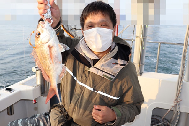 鯛サビキの予定でしたが前日も反応が薄かったのと、 朝見て無理そうだったので急遽「鯛ラバ割引便」に変更しました。 なかなか厳しい感じでトップ3枚でした。 もう少しですね。 今日も一日ありがとうございました。