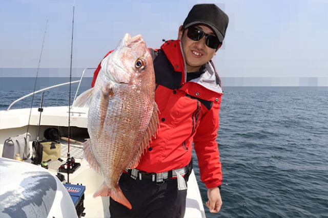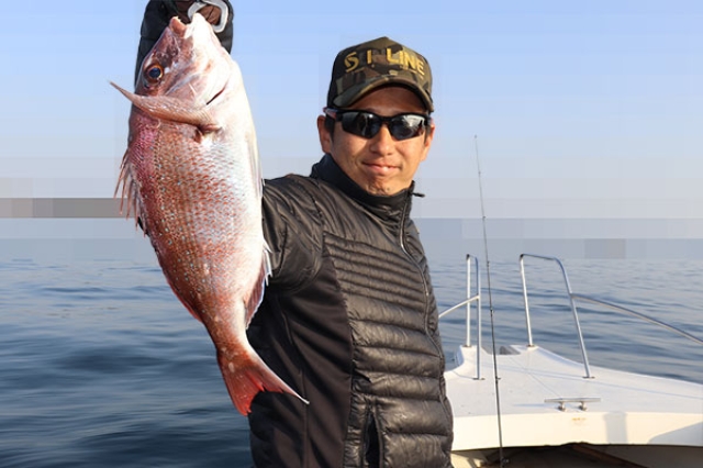 お二人さま鯛ラバ割引便。 分母が小さいのでドキドキでした。 朝イチはアコウが釣れてホッとしました。 しかしその後・・ お一人猛スパート! 最後に追い上げましたが時すでに遅し。 トップはツ抜けの10枚、もうお一人が6枚。 全部で8000円の割引でした~ 今日も一日ありがとうございました。 鯛ラバ釣れ始めました!! 明日明後日と潮が大きくなるに釣れて良くなると思います。 ご予約お待ちしております。