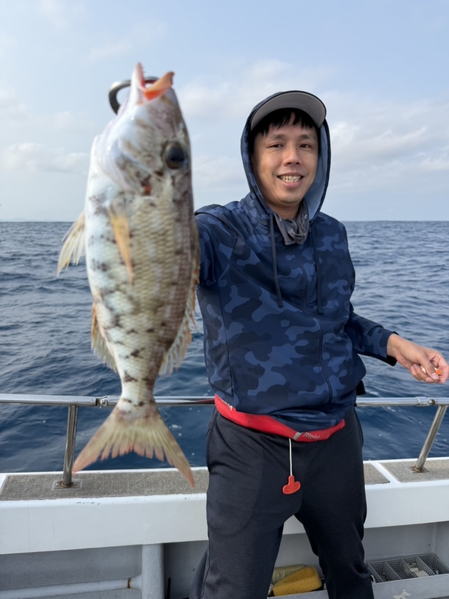 台湾からのゲスト様 ムネアカクチビ、アカハタ,イソフエフキ,オジロバラハタ、ホオアカクチビ、シロダイ、アマミフエフキ(ヤキータマン)🎣多種多様につれました!