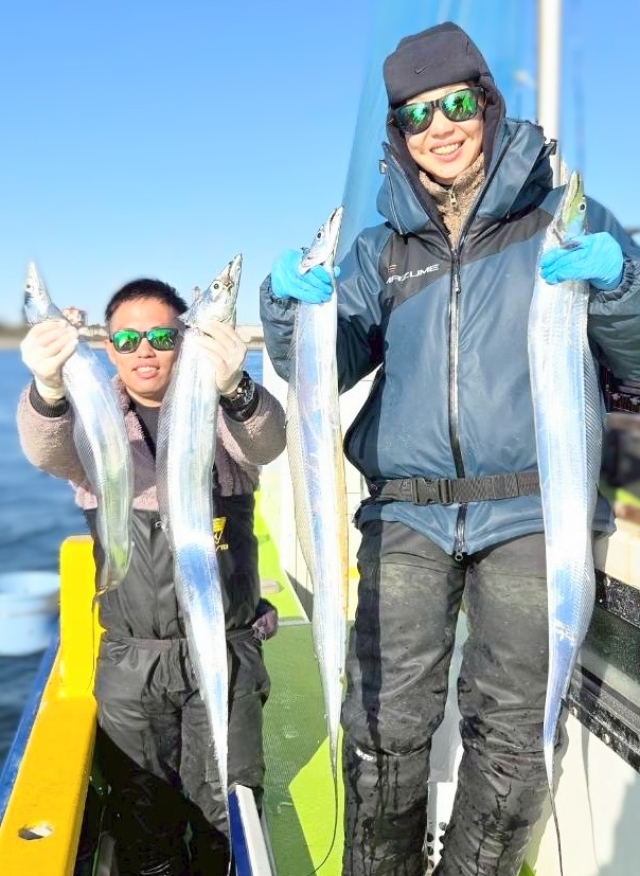 タチウオ75-108 cm 6-11 匹 アジ15-25 cm 9-53 匹 ▼船長より 本日LTア&タチウオのリレー船(^^)/ 新年1発目!5名様お集まり頂き初出船できましたm(_ _)m まずタチウオから!観音崎の船団に合流させて頂きスタート!開始から反応良く終始順調で、アタリも多く上手く掛けられれば上がってくるといった感じ(^_^;)サイズも良型多くみなさんお土産になりました(^_^)v トップ11本が2名、旦那さんがテンヤで11本、奥様は天秤で11本。7.7.6本。 続いてアジにチェンジ!11時半の潮止まりまでタチウオをやって移動したため、アジは短めの2時間弱!しかしちょうど潮が動きだしたタイミングなのか?開始から順調にポツポツ(^_^)小ぶりにたまに中型混じり。ラスト30分は型狙いで移動し、先ほどより中型混じりといった感じでタイムアップ! わずか2時間弱でトップ53匹、2番手43匹。またもご夫婦でワンツーとお見事でしたm(_ _)m 続いて37、18、9匹とお土産になりました! 天気もベタ凪快晴で、良い初釣りとなりました!今年もよろしくお願いいたしますm(_ _)m ★-------------★ ▼お知らせ ■ドラゴンカップ開催決定!! 開催期間 2026/2/7~2026/3/31 土日祝日のみ 全期間中におけるサイズ上位3名景品あり!! ※参加者全員に別途参加賞があります ■釣船予約の予約受付終了について 公式発表のとおりアングラーズアプリからの新規ご予約受付が1/30(金)を以て承れません。 以降のご予約につきましては弊社公式LINEからお手続きくださいますようお願い致します。 ※釣果投稿は引き続き同アプリでも行いますので、ぜひご確認ください ▼ご予約はこちらから かんたんLINE予約で24時間受付 https://page.line.me/?accountId=nishinoya_fishing ※再利用の方は会員証または会員番号をお手元にご用意のうえご予約ください ▼今後の出船予定 1/12(月) カワハギ船 1/17(土) リレー(LTアジ/タチウオ)船 1/24(土) リレー(LTアジ/タチウオ)船 1/31(土) タチウオ船 2/1(日) リレー(LTアジ/タチウオ)船 3/7(土) ドラゴンカップ※リレー(LTアジ/タチウオ)船 ▼運休日 2/6・13 上記日程ではお休みを頂いております。 ※別途、乗合船のみ毎週火曜日が運休です。 ★-------------★