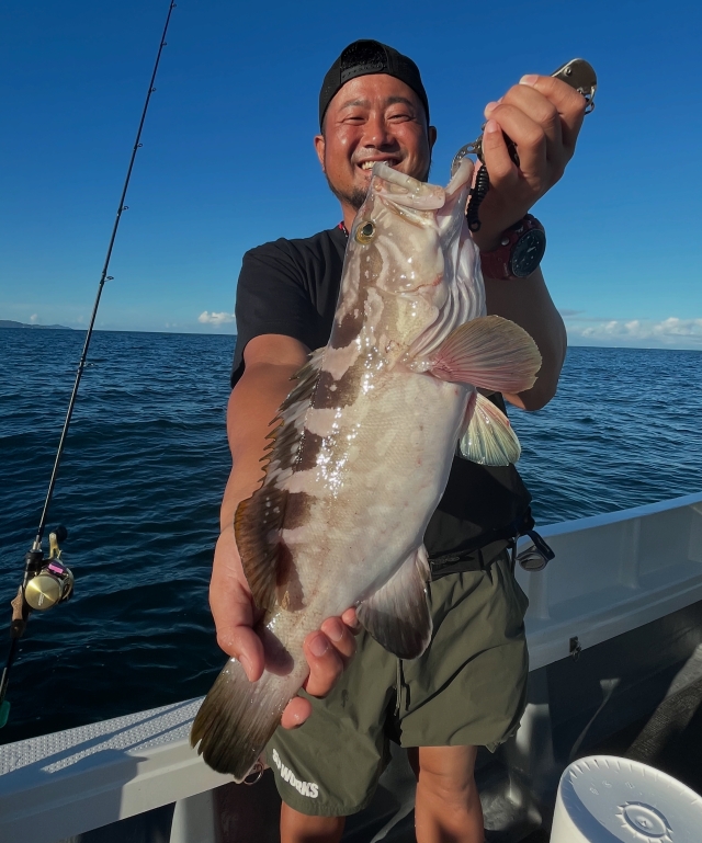 午前落とし込み便 昼前からまた荒れる予報だったので早出船早上がり! 朝からベイト豊富で付きも良かったですが 本日もバラシ悔やまれましたがクエ取れたのでよしとします🤣👍 最後にちょろっとアマダイもやってすぐ釣れました! 熱い中ありがとうございました! またよろしくお願いします🙇