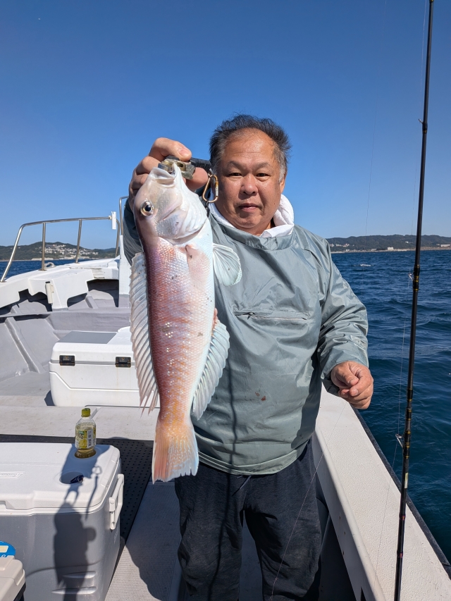 午前アマダイ便 予報よりマシでしたが、荒れてました 初心者さまでしたので、なるべくやりやすいとこ探して なんとか釣っていただけました! サイズも40センチ超えと良型でした! またよろしくお願いします😊