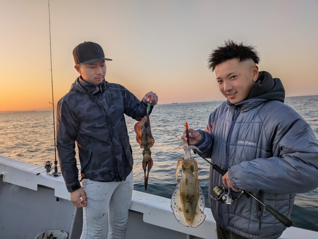午後ショート便ティップラン 超若手の船釣りデビュー戦 天候はデビューにはもってこいでしたが シーズンも終盤のタイミング。 なんとかタイミング合わせれて数杯キャッチしていただけて 楽しんでもらえました!