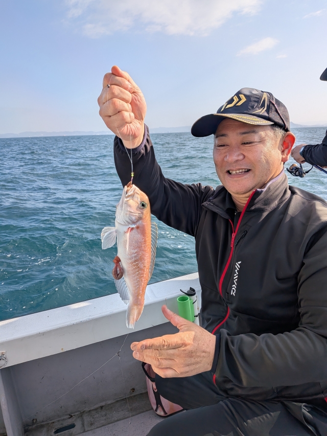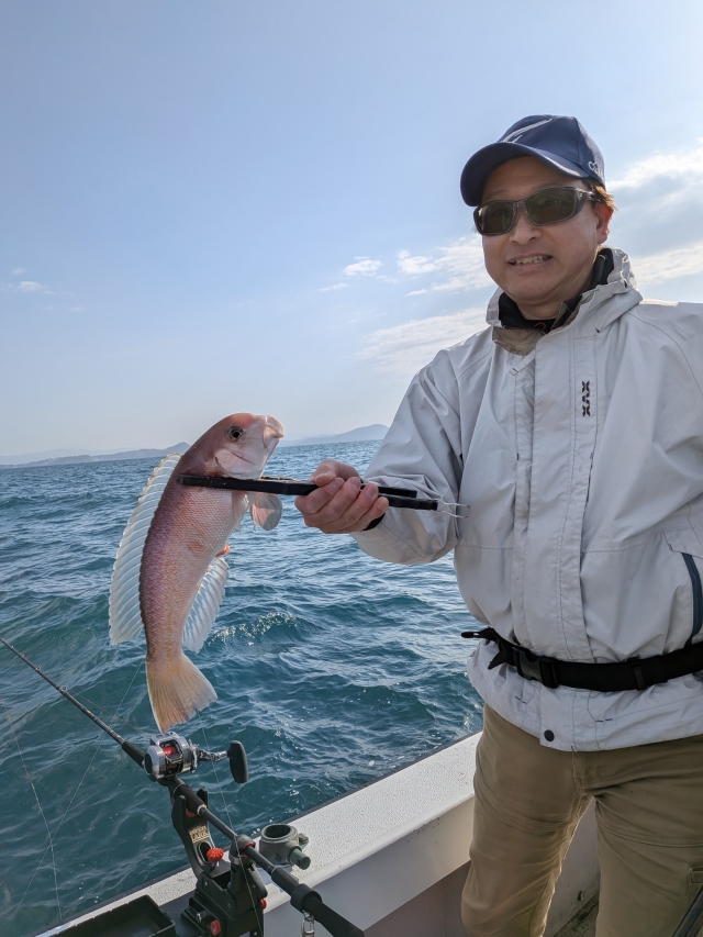 午前アマダイ便 波風ある中のスタートで頑張っていただきました 濁りのせいか食いが悪くしぶかったですね💦 水温は上がってきてるのでこれからに期待👍️ またよろしくお願いします😊 ジギング、キャスティングも調子かなり上がってますので ご予約お待ちしてます🙇♂️